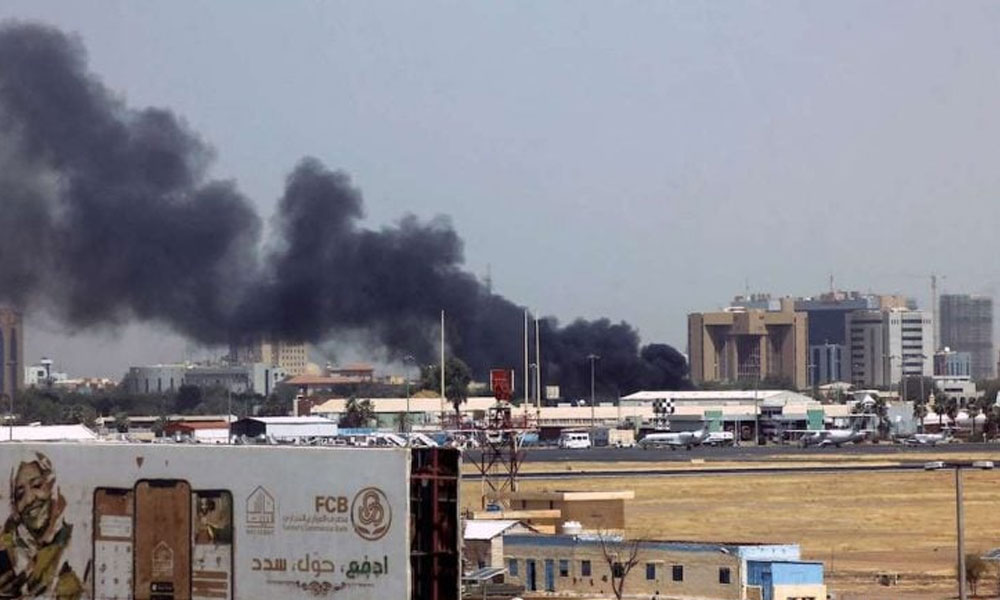 تصاعد الدخان من مطار الخرطوم بسبب معارك بين الجيش وقوات الدعم السريع في وقت سابق