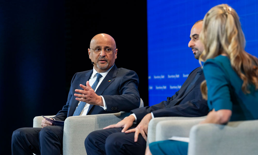 وزير الدولة لشؤون الاتصالات عمر العمر اثناء مشاركته في قمة “بلومبيرغ للتكنولوجيا” في لندن