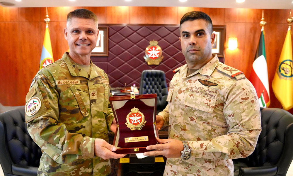 نائب رئيس الأركان العامة للجيش اللواء الركن طيار صباح جابر الأحمد الصباح مع مدير مكتب التعاون العسكري الأمريكي العقيد براين مكوله